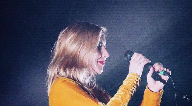 Après deux lives de Sandor et Pixx, Austra fait son entrée sur une boucle instru reprenant le thème du single Utopia. Mais c’est avec We were alive que débute le concert – le premier titre du nouvel album. Katie confirme son goût pour les robes-tuniques, celle-ci sera jaune, après la rouge de la Gaîté Lyrique et la blanche de la Cigale.
