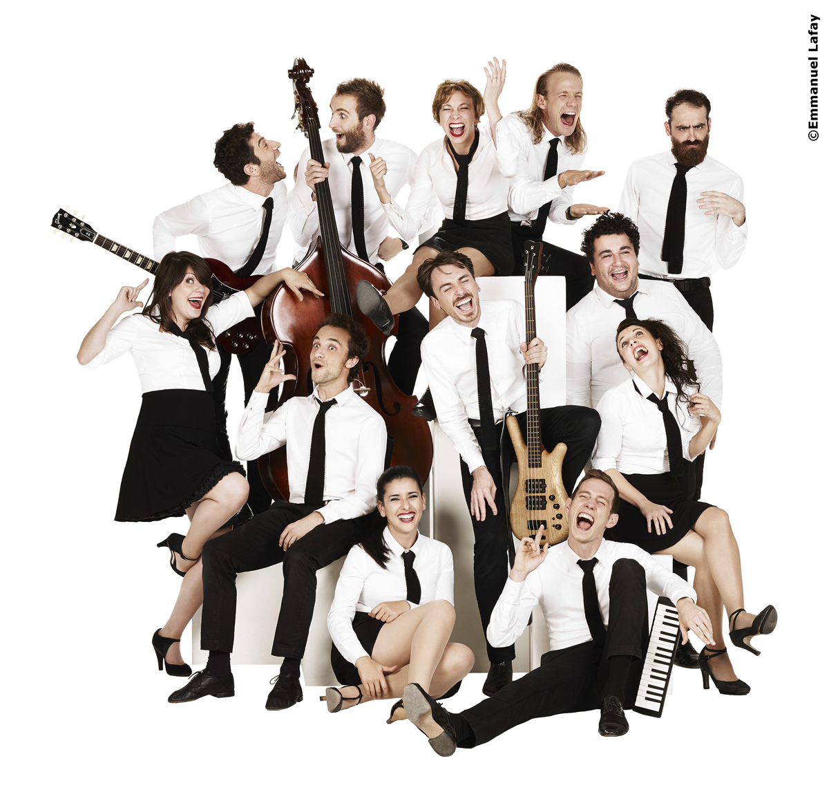 Et les beaux atours des 12 chanteurs (8 mecs, 4 nanas) ne doivent pas nous tromper. Ils ont beau être fringants – on les croirait prêts pour la prochaine cérémonie des Molière – ils ont capables des plus belles cabrioles et blagues et aussi des meilleurs déhanchés et moonwalk qui n’ont pas à démériter de l’original.