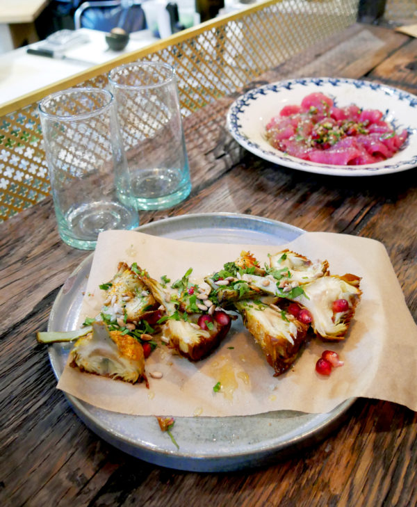 En mode découverte, le chef nous surprend avec les artichauts frits. On se régale avec le croquant de la cuisson qui n’enlève rien à la fraicheur du légume.