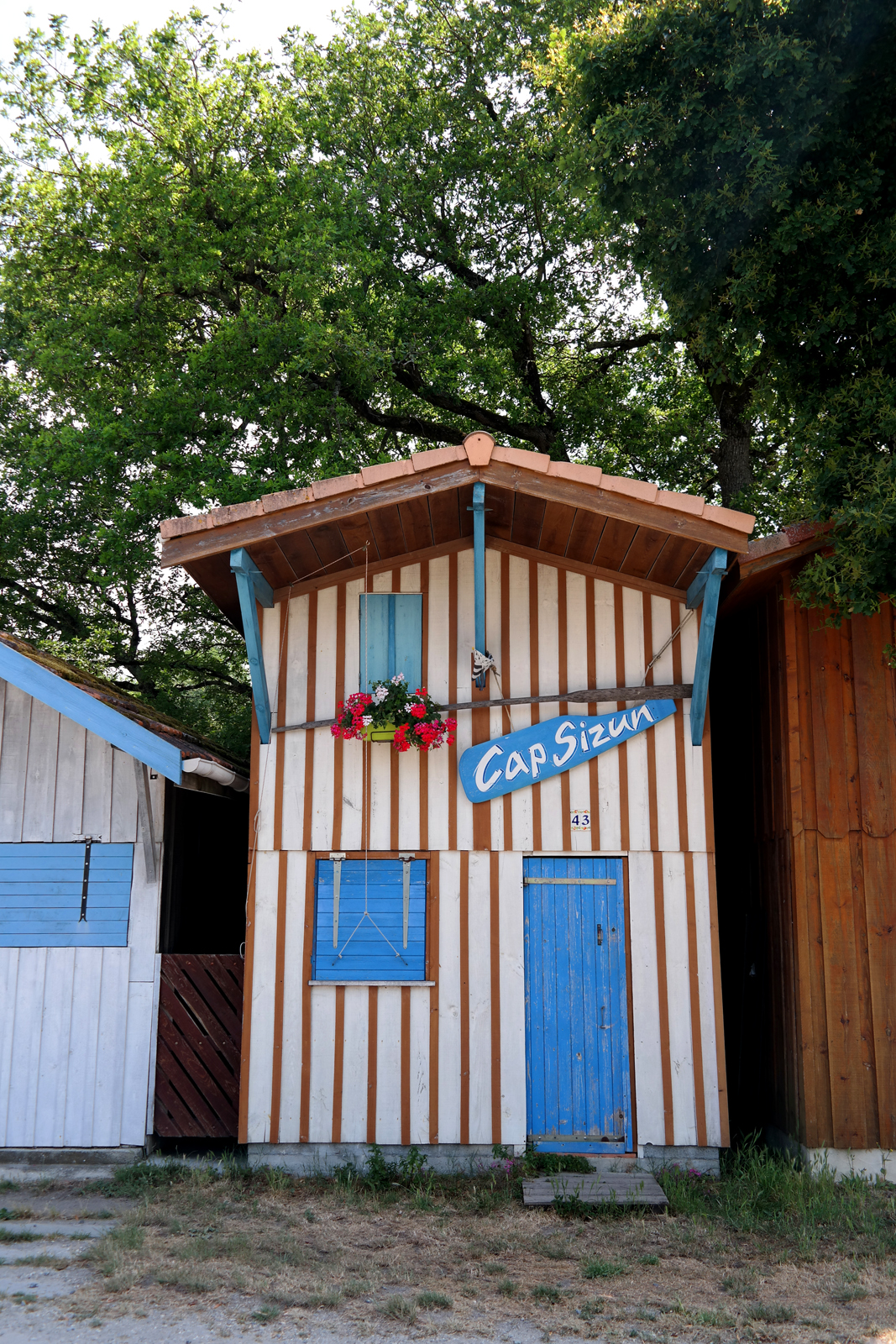 Ce vendredi ensoleillé, notre train s’arrête en gare de Facture-Biganos. Drôle de nom pour débuter notre séjour. A quelques minutes en voiture, le décor surpasse nos attentes. L’agitation estivale, somme toute raisonnable, n’est pas encore de mise. Les cabanes en bois colorées sont toutes fermées et les bateaux sont amarrés. Il y aurait un petit côté Dexter (la série US avec Michael C. Hall) : un port de plaisance agréable qui pourrait laisser penser à des activités plus obscures, la nuit tombée.