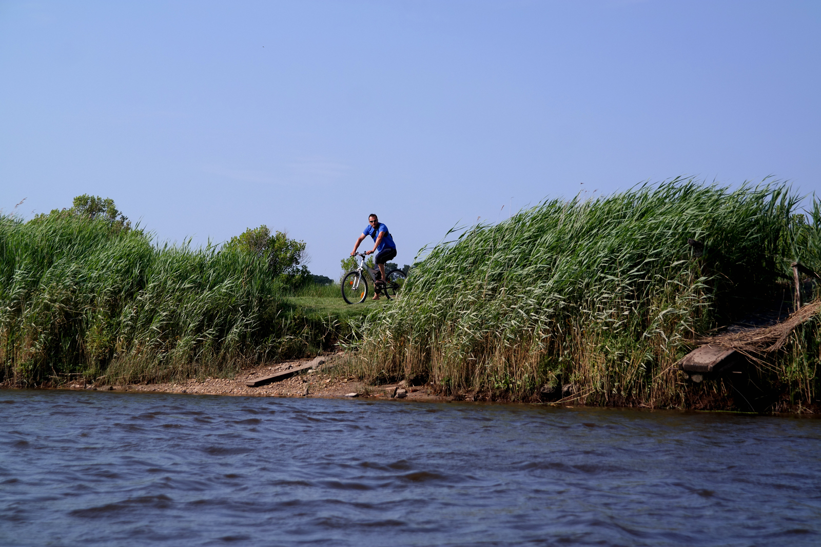 Les grandes herbes et autres roseaux masquent l’étendue des terrains alentours et offrent un écrin exceptionnel à notre périple à l’approche du Bassin d’Arcachon, sans aucun vis-à-vis. Yannick nous conte, alors qu’il navigue à la force des bras, ce territoire qui nous est inconnu.