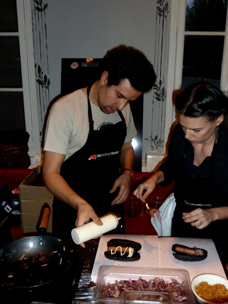 Suit le mini-burger au foie poêlé préparé par le chef devant les yeux des gourmands. Une préparation minutieuse pour ne perdre aucune miette des ingrédients simples en version miniature. Le chef avoue s’adonner à cette recette pour la première fois. Le coup de main est remarquable.