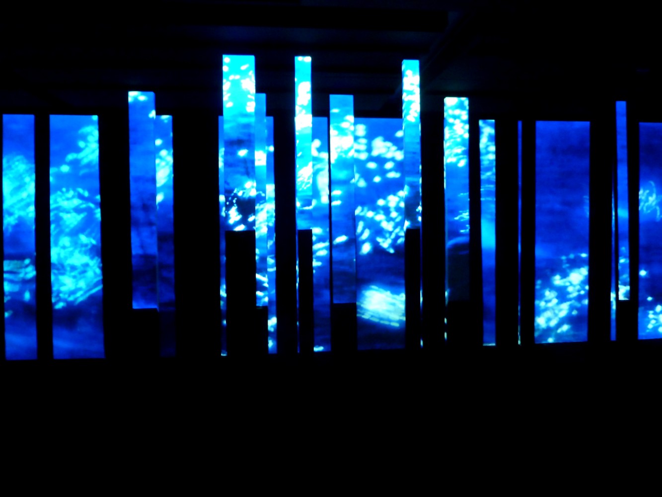 L’Espace Fondation EDF, ne réussissant jamais mieux que dans l’organisation d’installations – souvenons-nous celle du paysagiste Pascal Cribier ou de Patrick Blanc- accueille l’artiste jusqu’au 25 mars 2012 pour une plongée en eaux lumineuses, en digressions contemplatives et en jeux d’éblouissement visuels.