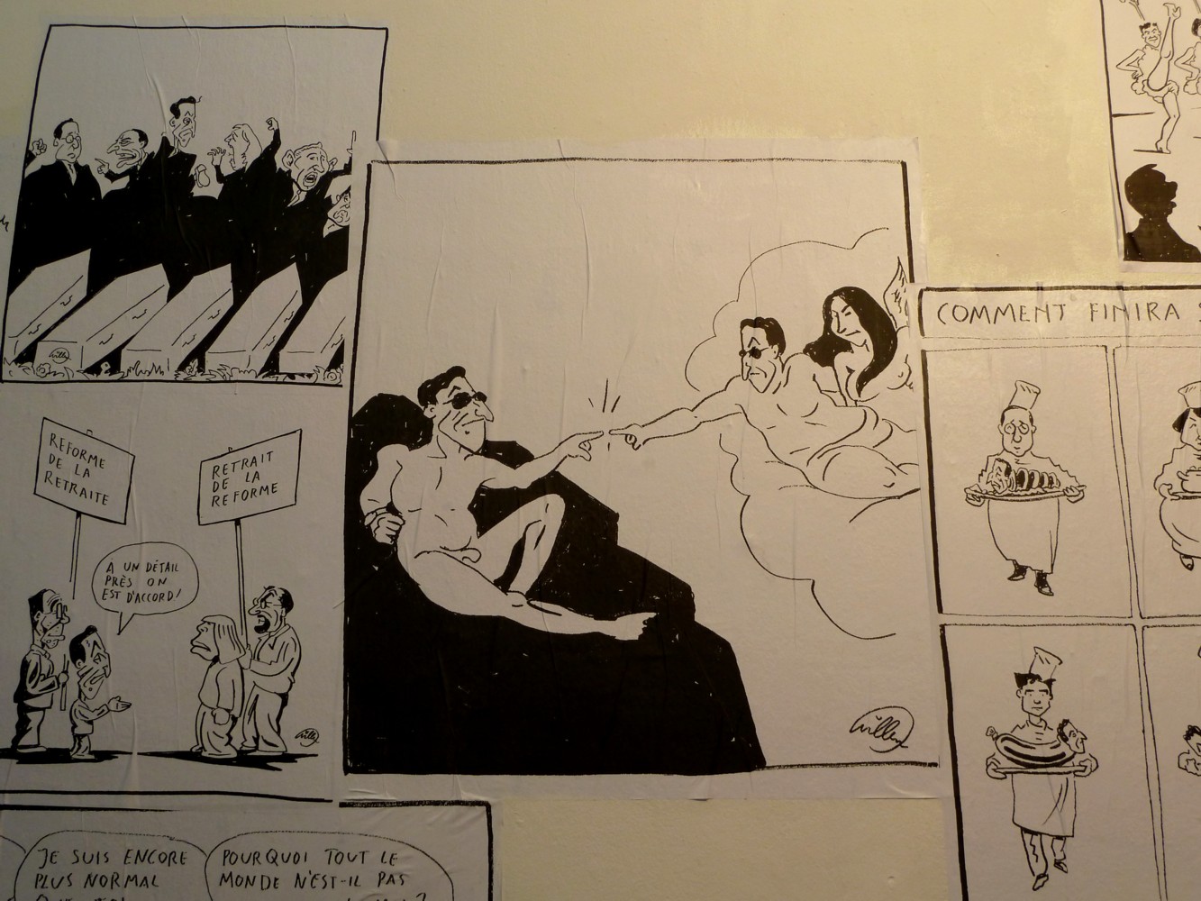 Le dessinateur se réservant le droit de faire évoluer l’exposition Willem Président! en l’agrémentant des dernières esquisses de la campagne en cours.