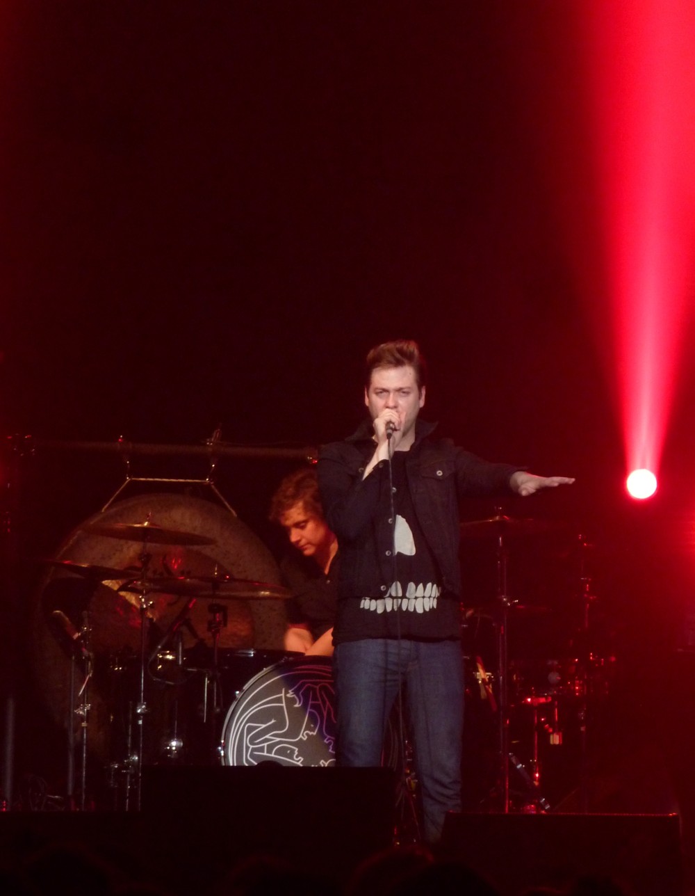 21h. Entrée sobre et éclairée du groupe américain sur What you were. Ca chauffe les pieds. La mèche blonde du chanteur, Jonathan Pierce, n’en finit plus de s’envoler avec les mouvements de tête.