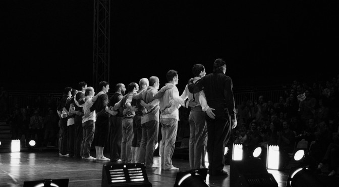 Ici, point de metteur en scène, ni de directeur artistique. Les idées ont fusée pendant 4 mois et tous les membres de la compagnie pour créer Il n’est pas encore minuit. Seule l’aide d’un chorégraphe a été sollicitée Loïc Touzé essentiellement pour avoir “un regard extérieur“, comme confie un des interprètes. Alors que le précédent spectacle, Le Grand C, était un peu trop centré sur les portées (un acrobatique debout, les pieds bien arrimés aux épaules de son ou sa partenaire), les sauts périlleux, joyeux, multiples et autres figures enchanteresses de cette création 2015 impressionnent avec une réelle intensité.