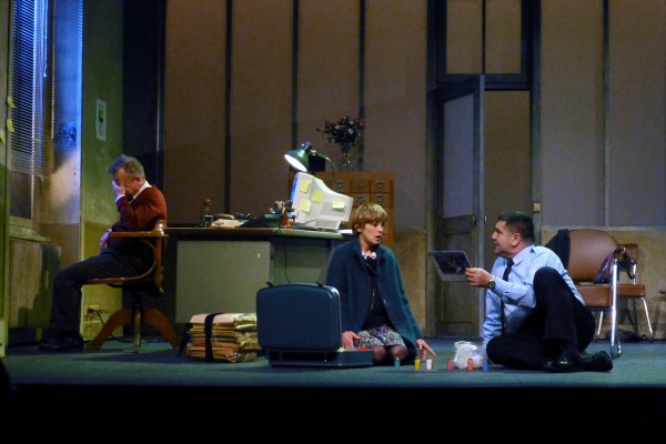 Dominique Pinon est parfait dans le rôle de ce flic, tout à la fois grossier et poétique. Il faut le dire, il porte la pièce sur ses épaules et rayonne face à Florence Loiret Caille, un peu en demi-teinte par rapport à son homologue qui domine le plateau. On peut émettre une réserve de mise en scène lors de l’aveu de son crime. Il est évident qu’une femme torturée par la culpabilité ne se livrera pas à la police en sifflotant, mais l’entendre raconter son crime en haletant, à bout de souffle, nuit un peu au côté réaliste de la situation. Rien de rédhibitoire toutefois. Quant aux quelques apparitions du policier de garde (Pierre Forest), elles fluidifient le dialogue entre les deux personnages principaux.