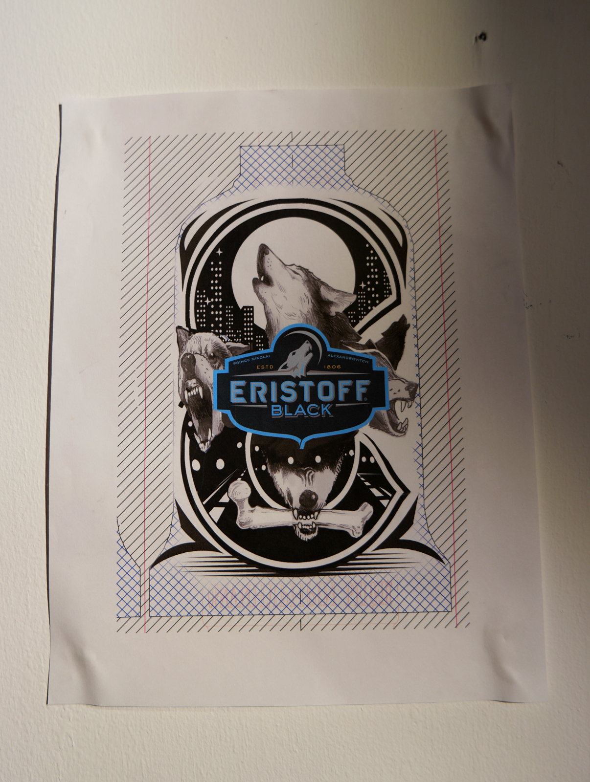 Donc l’édition limitée 2015 Wolf Pack d’Eristoff c’est la rencontre de trois styles : Nairone, pour la partie France/Europe, Travie McCoy, le New-yorkais et Jim Phillips, le Californien. Mais “la combinaison des trois n’a pas forcement été évidente” dixit Thibault.