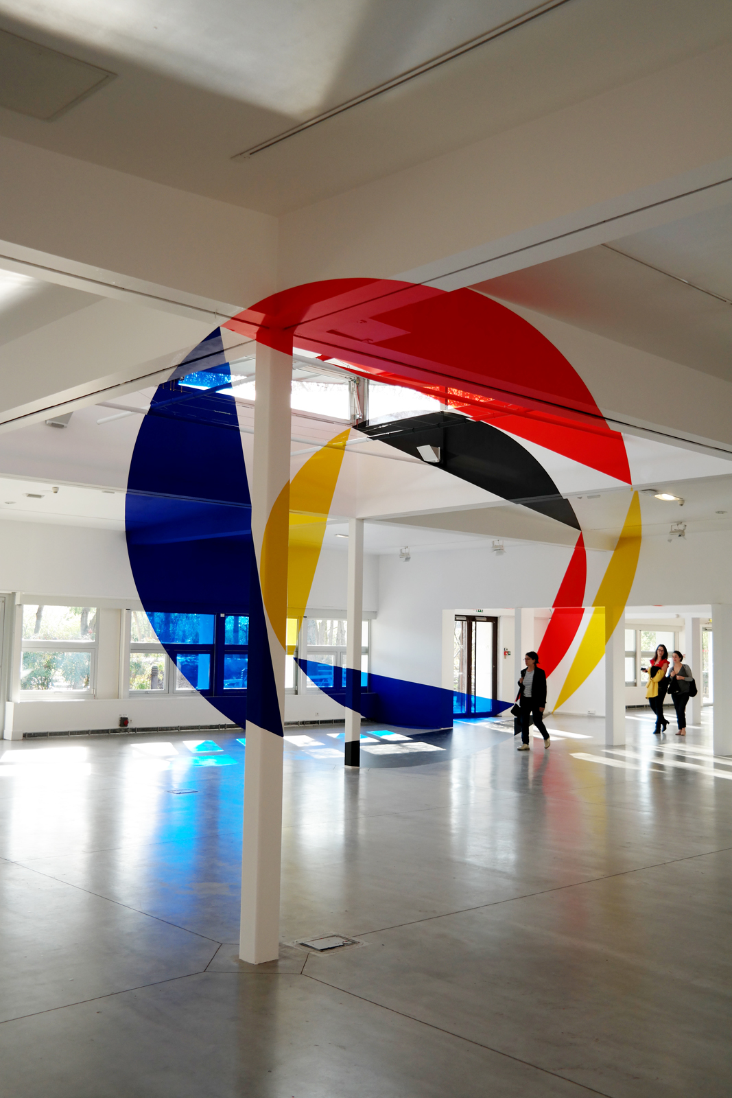 La Grande Halle a laissé son charme opérer : “elle s’est imposée” nous confirme Varini qui est sorti définitivement de son atelier en 1978 pour faire déborder son art sur tout type d’architectures, sans limite de frontière.