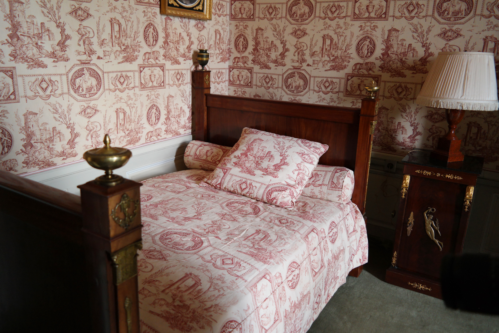 C’est surtout l’étage qui nous révèle les évolutions des agencements au fil des années. La chambre au style Napoléon est de toute beauté et assume totalement le décor quelque peu chargé.