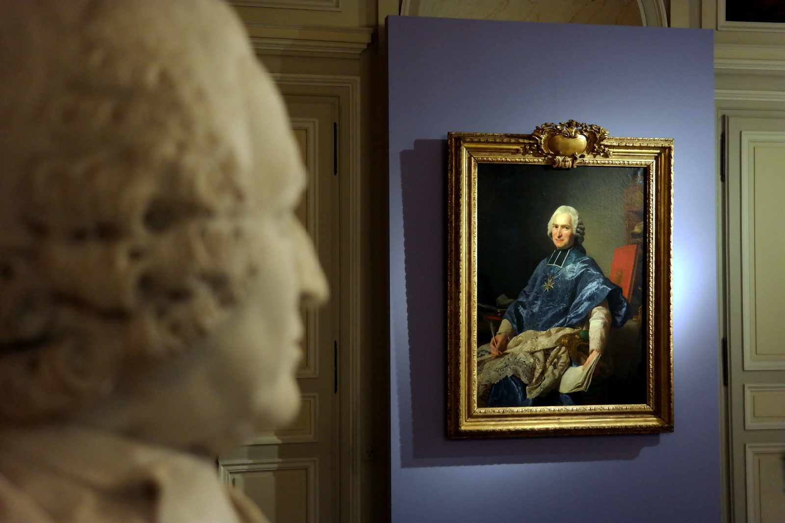 A travers de plans d’architecte de son château, de livres extraits de sa bibliothèque, vendus à sa mort, un portrait magnifique et des sculptures, Gwenola Firmin, conservateur en charge des peintures du XVIIIe siècle au Château de Versailles, a tenu à remettre dans la lumière l’ecclésiaste.