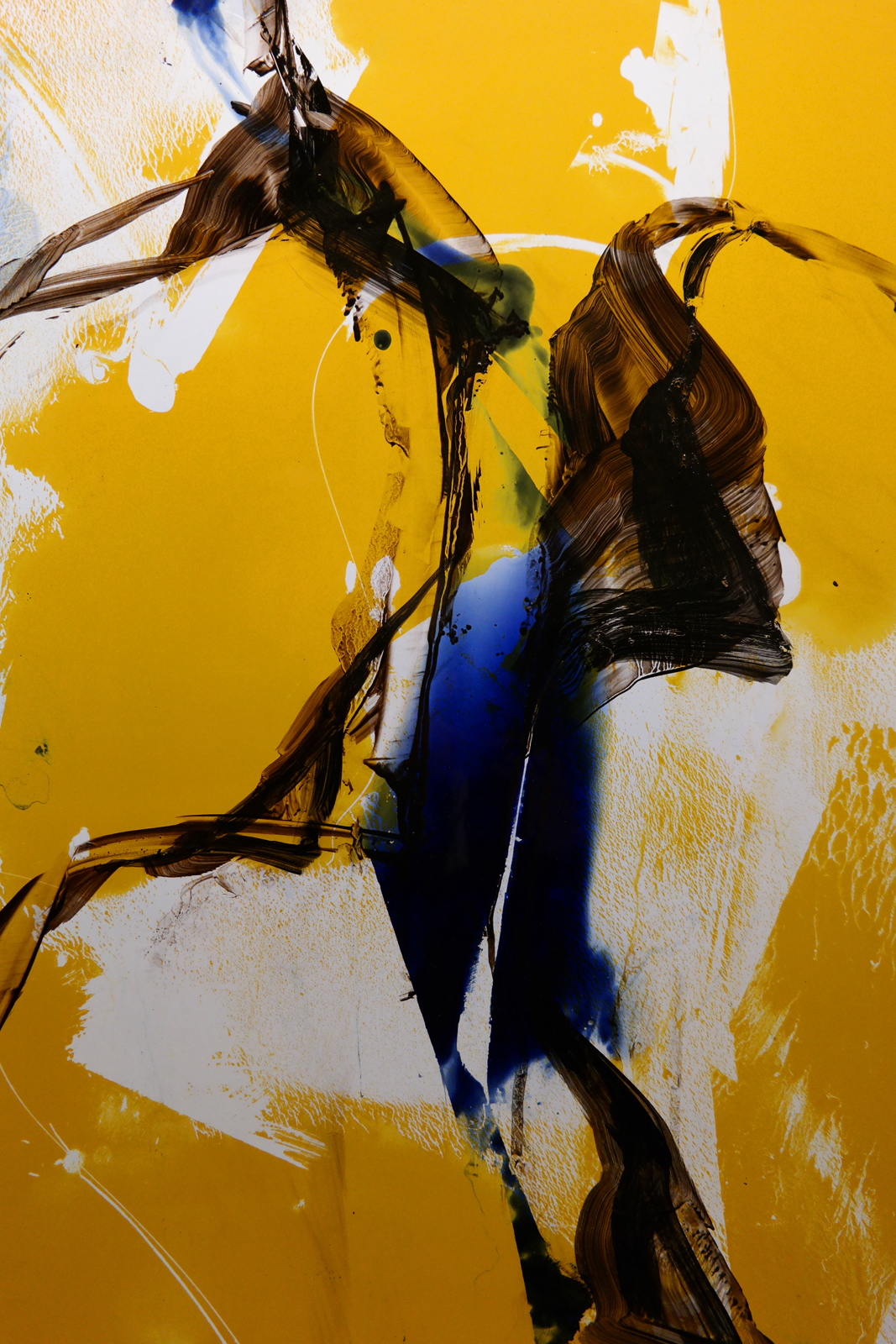 Un seul nom a suscité toute notre convoitise : Pierre Soulages. Nous nous attendions à un face à face avec la création originale réalisée pour l’Abbaye de Conques et l’on découvre, non sans émotion, l’oeuvre réalisée en 1965 à la demande du Suermondt-Ludwig-Museum d’Aix-la-Chapelle.