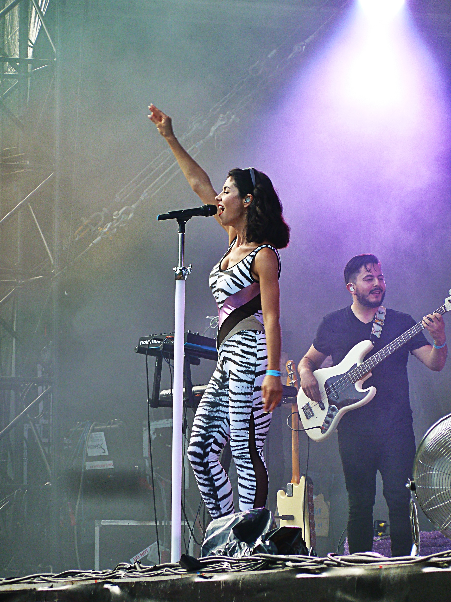 Autre charme, tout autre audace vestimentaire aussi en cette après-midi à Saint-Cloud avec Marina and The Diamonds. Une sorte de Katy Perry britannique en talons roses et tenue ultra moulante. La pop acidulée bonbons de toutes les couleurs amuse.