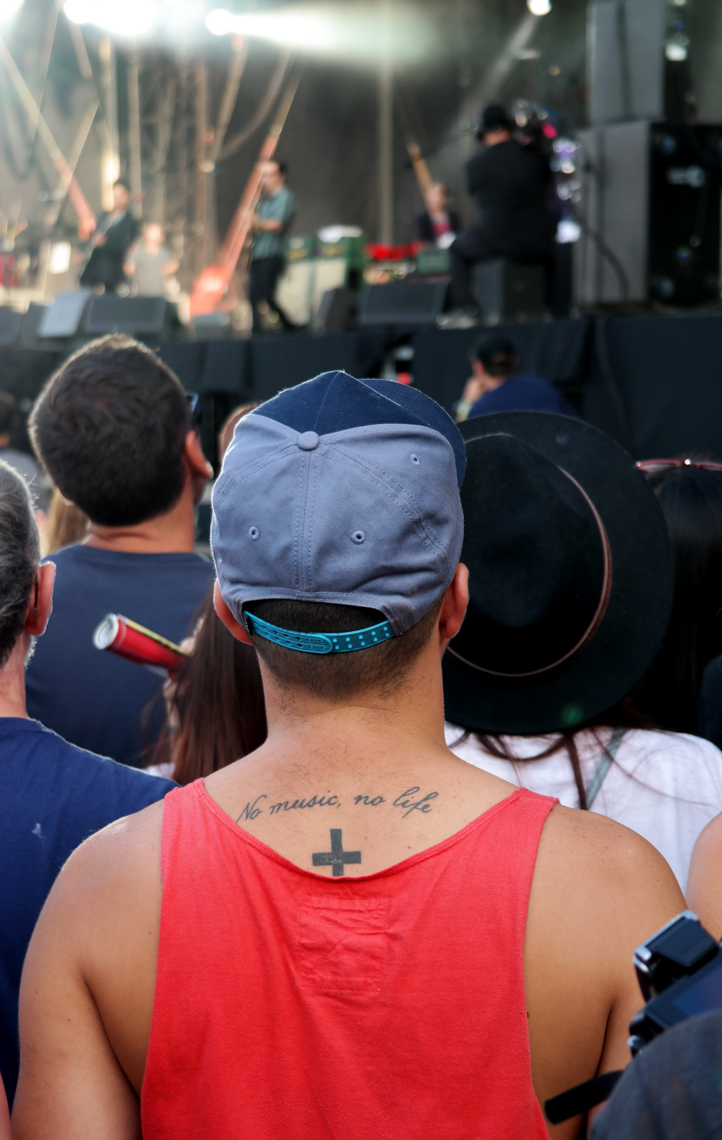Rock en Seine, c’est aussi l’amour de la musique gravée sur la peau, des jolis papillons – pour le moment on en a vu qu’un, mais il doit y en avoir d’autres – et des étreintes fraternelles ! #cute