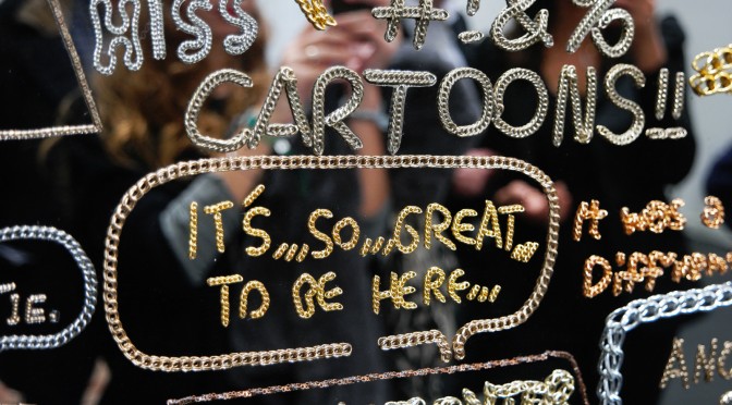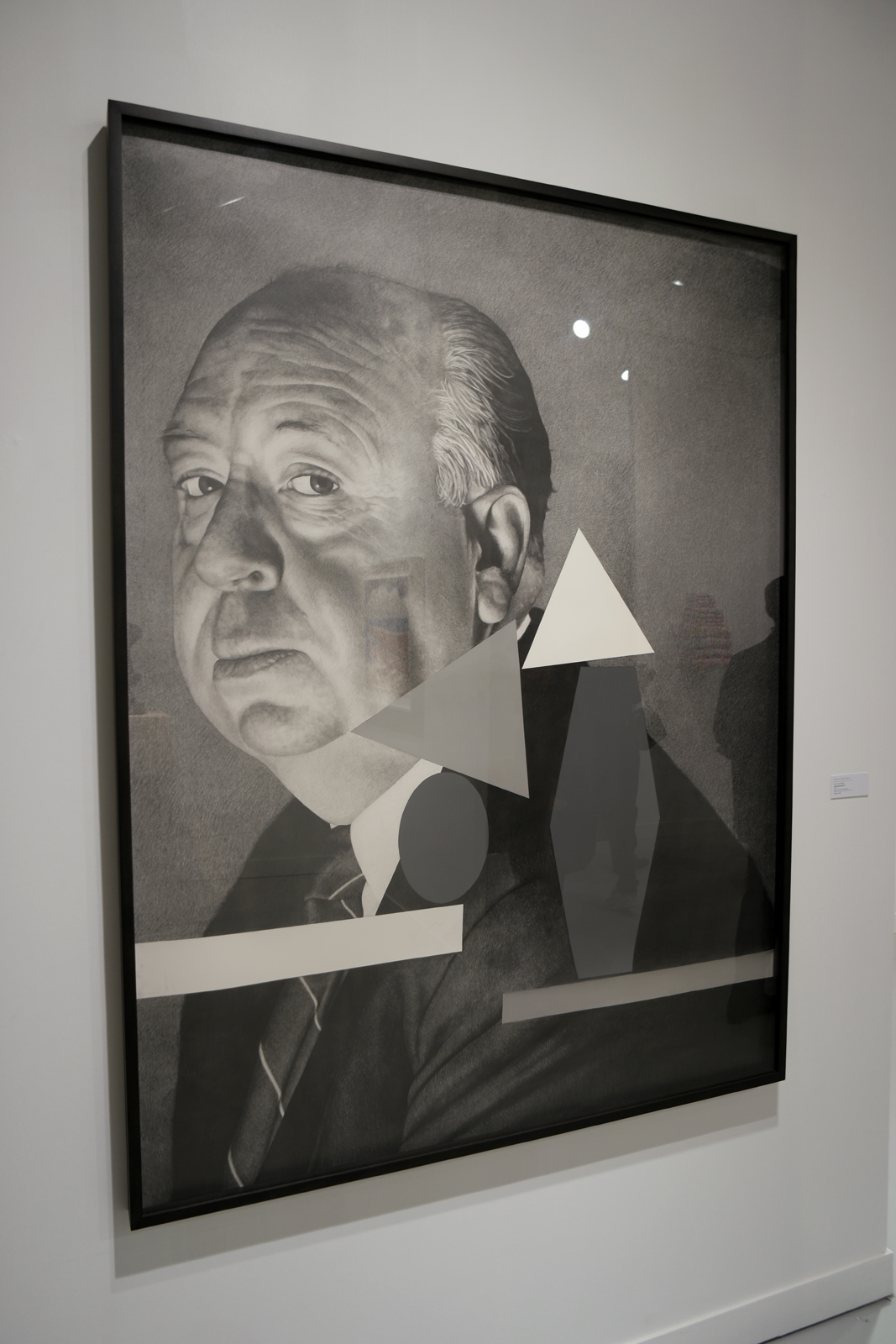 Autre regard tout aussi intense : Hitchcock par Karl Haendel réalisé au crayon et à l’émail sur papier. Beaucoup de visiteurs sont passés devant sans prêter une réelle attention, sans doute à cause du manque de recul. Mais le regard est aussi bien imposant que bienveillant.