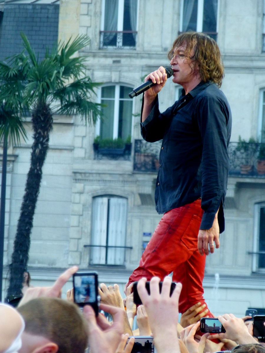 Scène touchante un peu plus loin, dans la cour intérieure de l’Hôtel de ville, quand un tout jeune bambin approche la montagne Higelin. Il lui propose, avec toute sa candeur, une mini-barre chocolatée. Le chanteur ne perd rien de sa capacité à s’émerveiller.