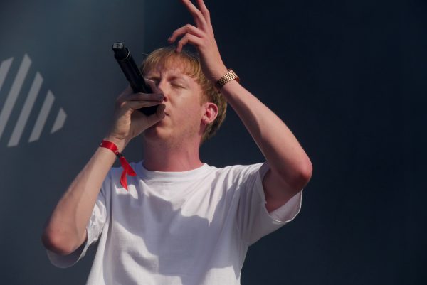Celui qui se balade en coulisses avec un sac à main rétro – qu’on croirait sorti d’un cabinet de médecin du début du XXe siècle – a une manière très particulière de baisser le visage quand il ne chante pas, pendant les instru.