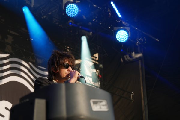 Début de set tout en puissance, décibels et rythmiques à donf. Pas le temps de comprendre si ce sont des nouveaux titres ou des anciens. On shoote à mort les musiciens lookés, le chanteur, Faris Badwan, s’entortillant les bras avec le fil de son micro, balançant son pied de micro puis le retrouvant au titre suivant.