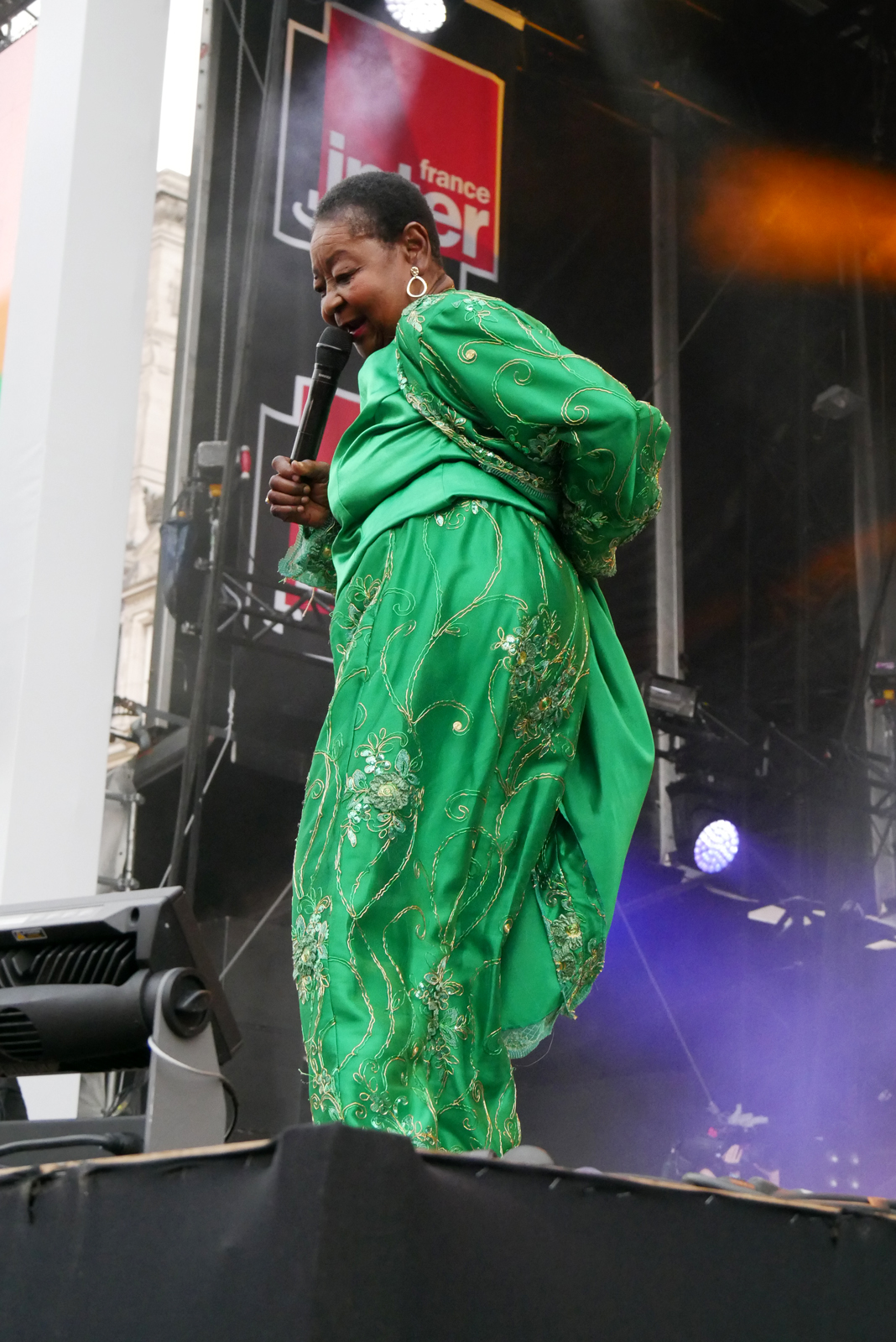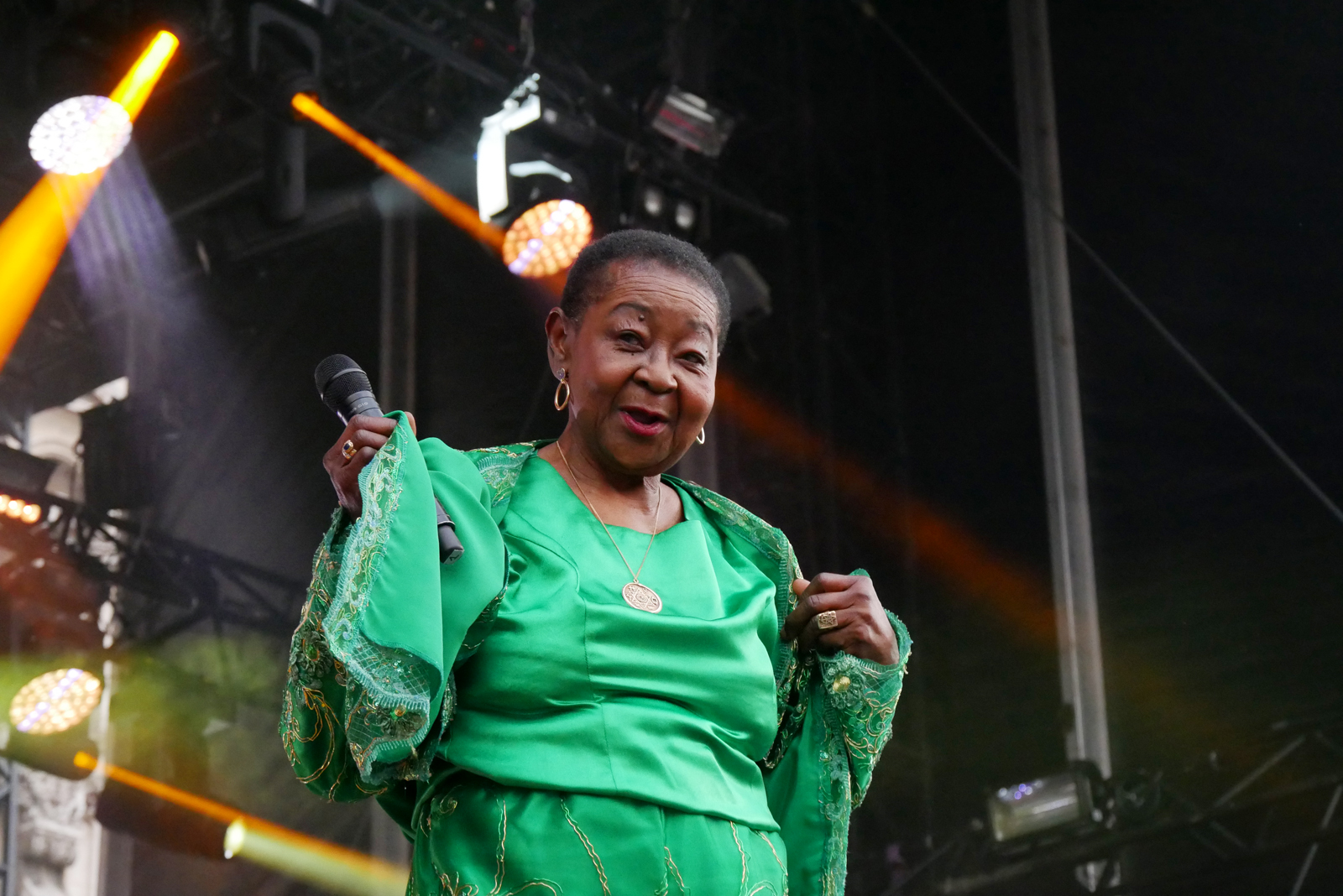 Calypso Rose est d’humeur friponne ce soir, en moins d’une minute, elle montre une épaule, secoue son postérieur de façon canaille. Il faut dire qu’il y a foule de jeunes gens à aguicher devant la scène.