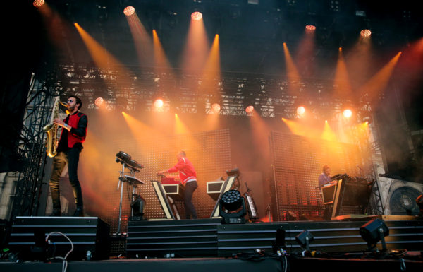 Cette ambiance plus clubbing transforme le parvis en un dancefloor à ciel ouvert. Giclées de fumée et aussi serpentins argentés surgissent régulièrement au devant de la scène.