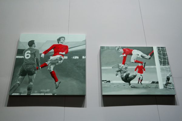 Géniale immersion dans une salle carrée dédiée à l’art et au foot, curieux duo ! D’un coup d’œil panoramique, on perçoit l’ensemble des propositions artistiques réunies. Et il faut bien avouer que l’on a été bluffé par l’inspiration que le foot a pu susciter chez nombre d’artistes, dont quelques-uns que nous affectionnons particulièrement.