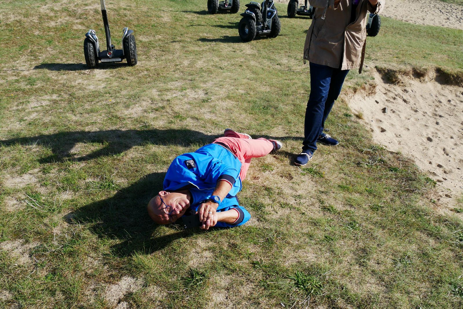 Pascal, notre génial moniteur, est prêt à tout pour nous faire aimer le gyropode. Il prend ton smartphone pour immortaliser, sécurise les passages étroits. Aucun risque pour détente maximale.