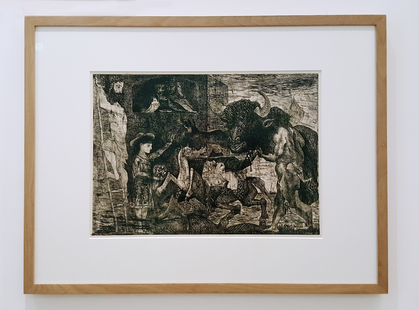 Dans chaque salle, on se confronte à l’art du maître espagnol, souvent en noir et blanc (crayon, encre de chine ou eau-forte) mais aussi en couleur avec des toiles qui marquent un aspect essentiel de la création de Guernica.