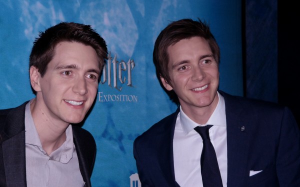 Pour commencer notre visite de l’exposition, nous avons eu le plaisir de croiser les jumeaux Fred et George Weasley (interprétés par James et Oliver Phelps), qui se sont prêtés facilement au jeu des photos selfies et autographes avec les fans présents pour cette soirée qui promettait d’être exceptionnelle.
