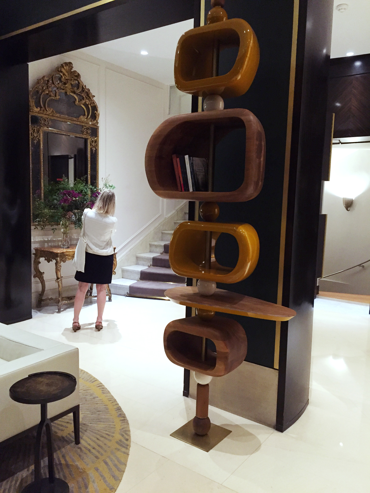 La décoration, confiée à Pascal Allaman, architecte décorateur, est élégante, chic et sobre. Elle reste typiquement parisienne via la présence de corniches et de moulures. Les tonalités et les matières sont chaudes, les matériaux utilisés, comme le marbre pour les salles de bain sont luxueux mais pas tape à l’œil. Le mobilier est simple, élégant. Nous avons l’impression de nous trouver dans une chambre d’un appartement haussmannien. On s’y sent bien.