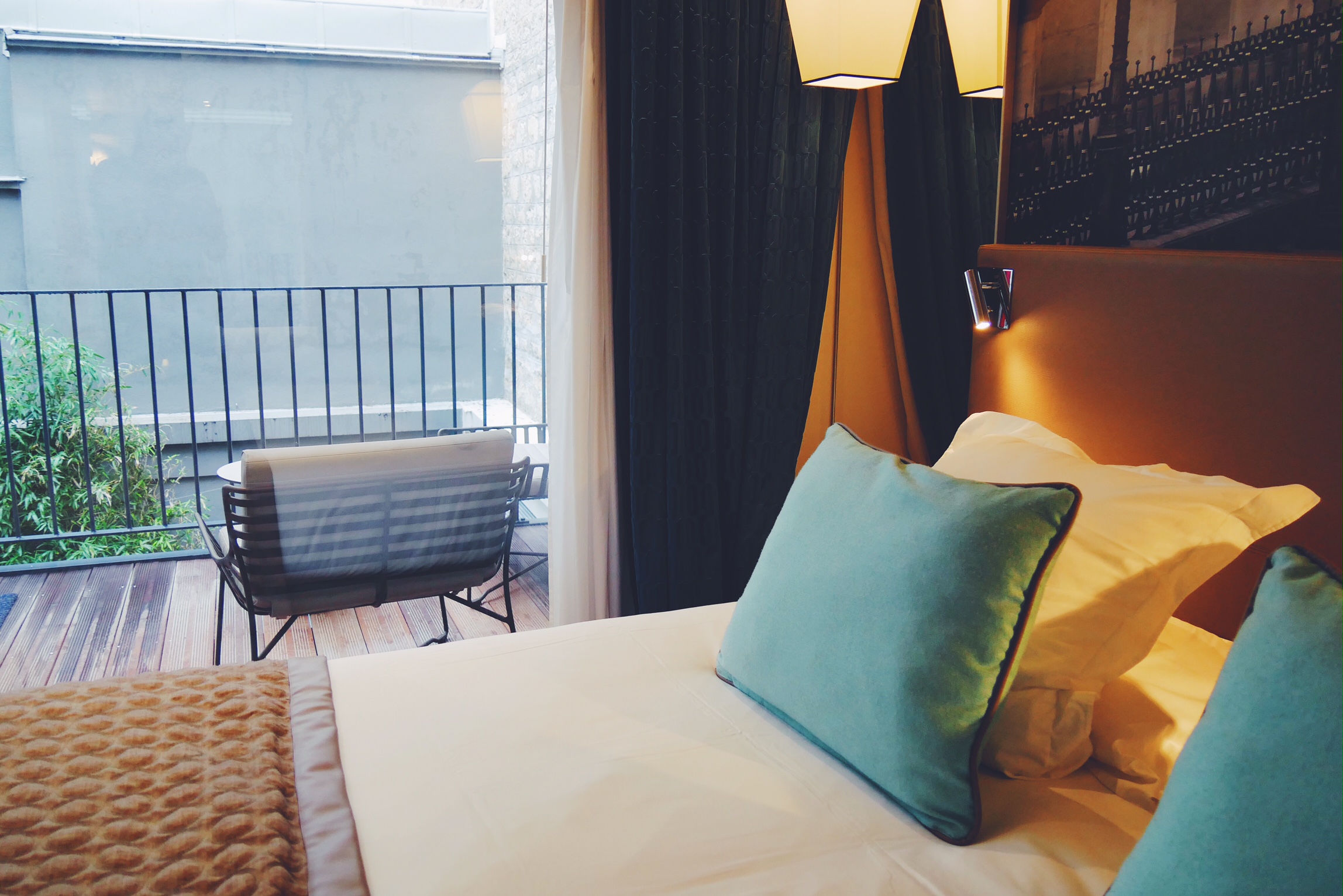 Il faut s’élever un peu dans les étages pour profiter d’un double confort : un balcon côté rue depuis la salle de bain pour une vue sur les architectures environnantes et un balcon côté chambre pour profiter du calme de la cour intérieure au petit-déj’, par ex.