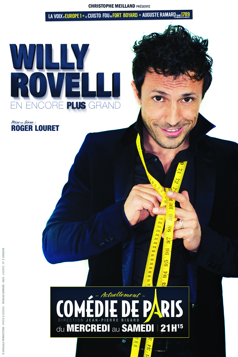 Le titre du spectacle est évocateur. Willy Rovelli, « en encore plus grand ». C’est lui qui le dit et à voir l’énergie qu’il dégage à la Comédie de Paris, quatre soirs par semaine, du 24 septembre au 20 décembre, on serait tenter de le croire.