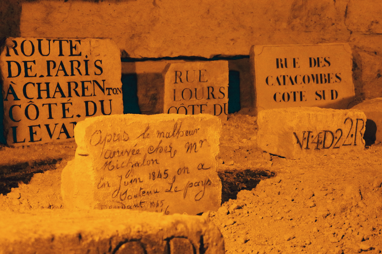 Exploitées durant des centaines d’années, ces carrières recèlent de détails comme ces plaques – permettant de se repérer dans ce dédale – et qui reflètent les mutations de la société : de la révolution aux grands travaux d’Haussmann.