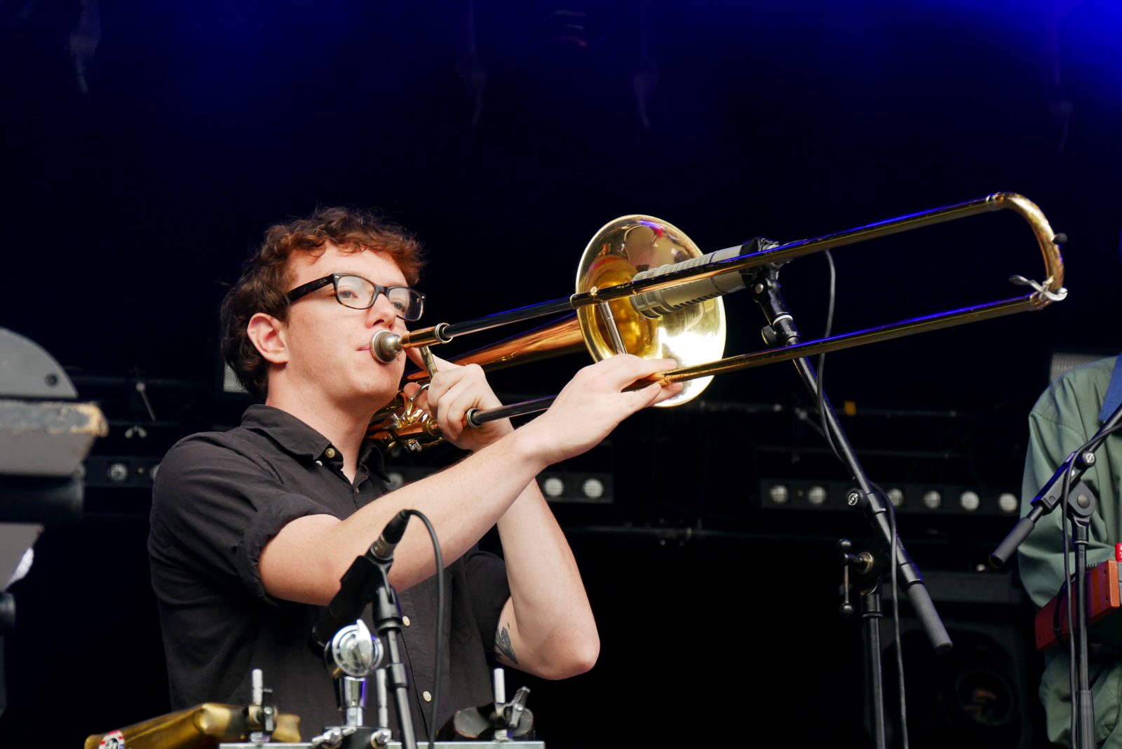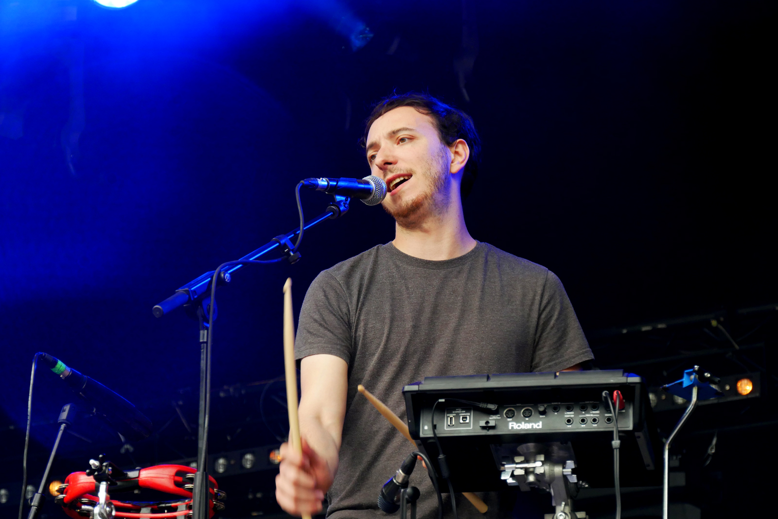 A Rock en Seine, on a extrait deux membres pour les cuisiner : Pablo, claviers, trombone et percus, passionné de synthé modulaire – oui oui, ça existe ! – et Simon, le batteur frénétique à casquette.