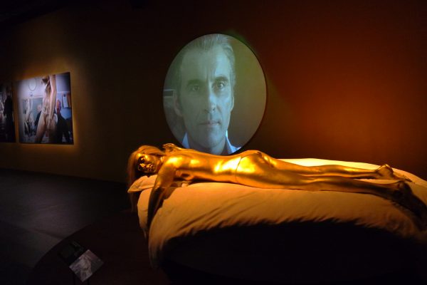 Telle une balle, nous traversons un fût de canon pour nous lancer dans la visite. Et, tout de suite, nous sommes dans le bain avec cette scène majeure de Goldfinger : Jill recouverte d’or.