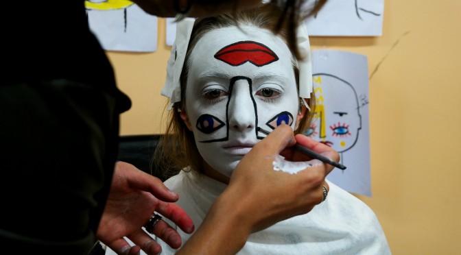 Passage en loge pour la répartition des créations originales de maquillage toutes différentes les unes des autres pour chaque participante.