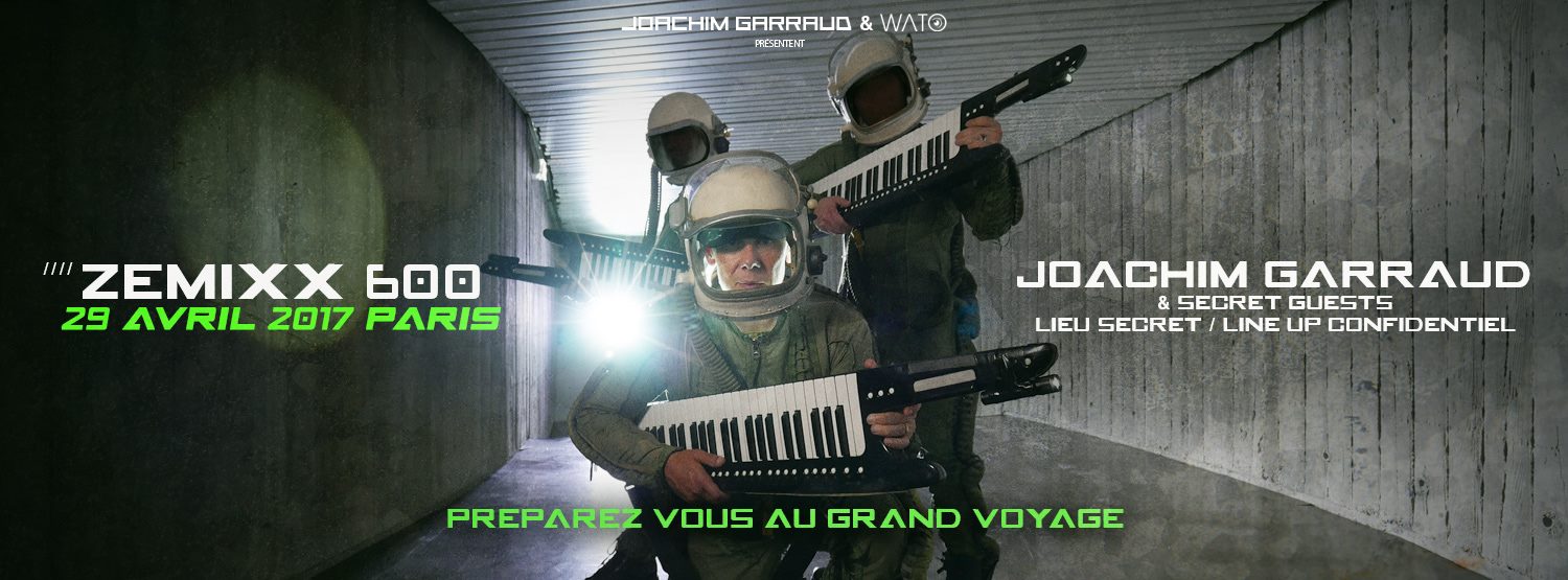 La bande-son de ton voyage spatiale sera assurée par le DJ super star Joachim Garraud et 3 autres comparses internationaux qui n’ont pas encore révélé leur identité.