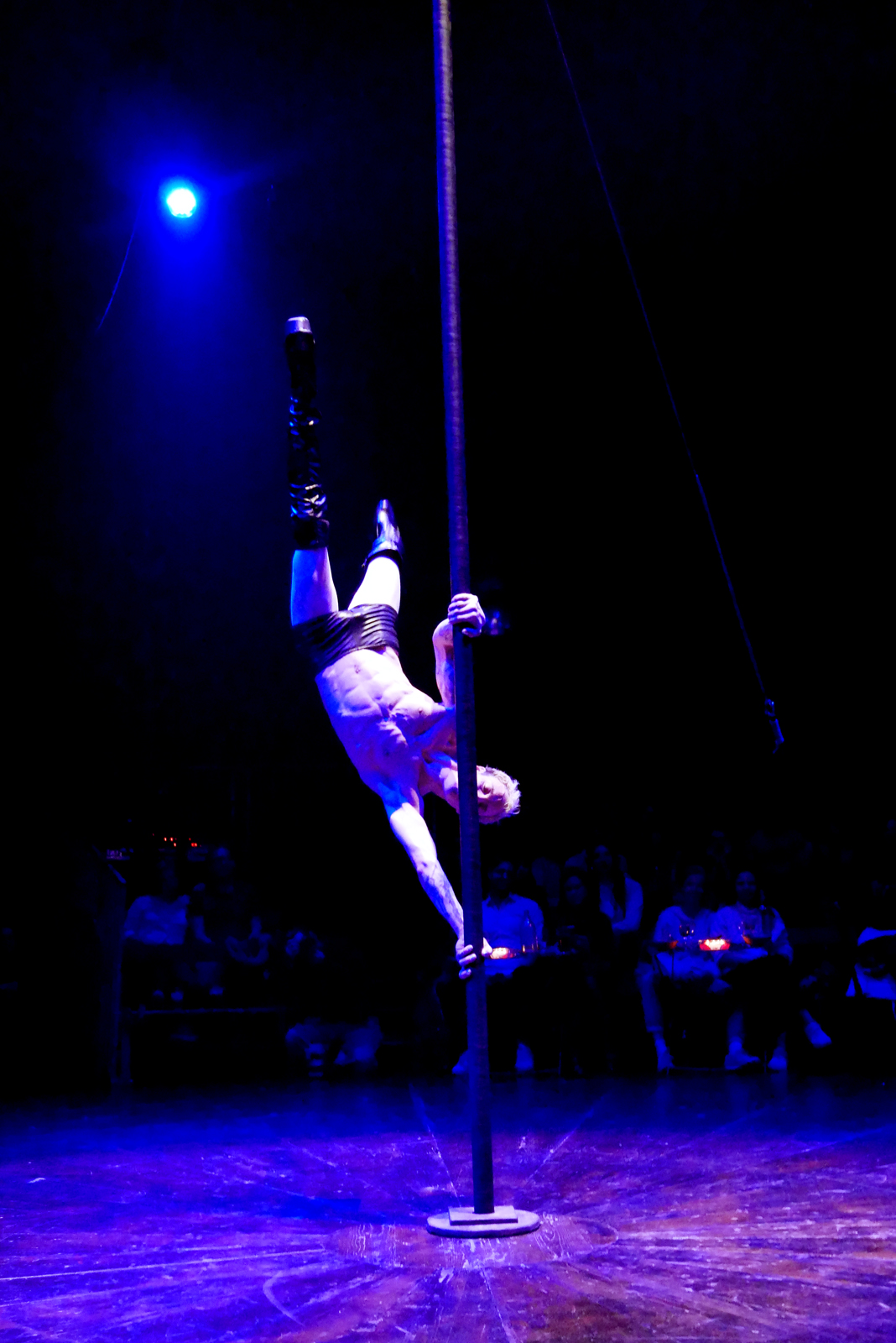 Pierre infatigable génie de la pole dance avec talons hauts et muscles secs. On se prend à rêver que l’on pourrait aussi se jeter sur la barre.