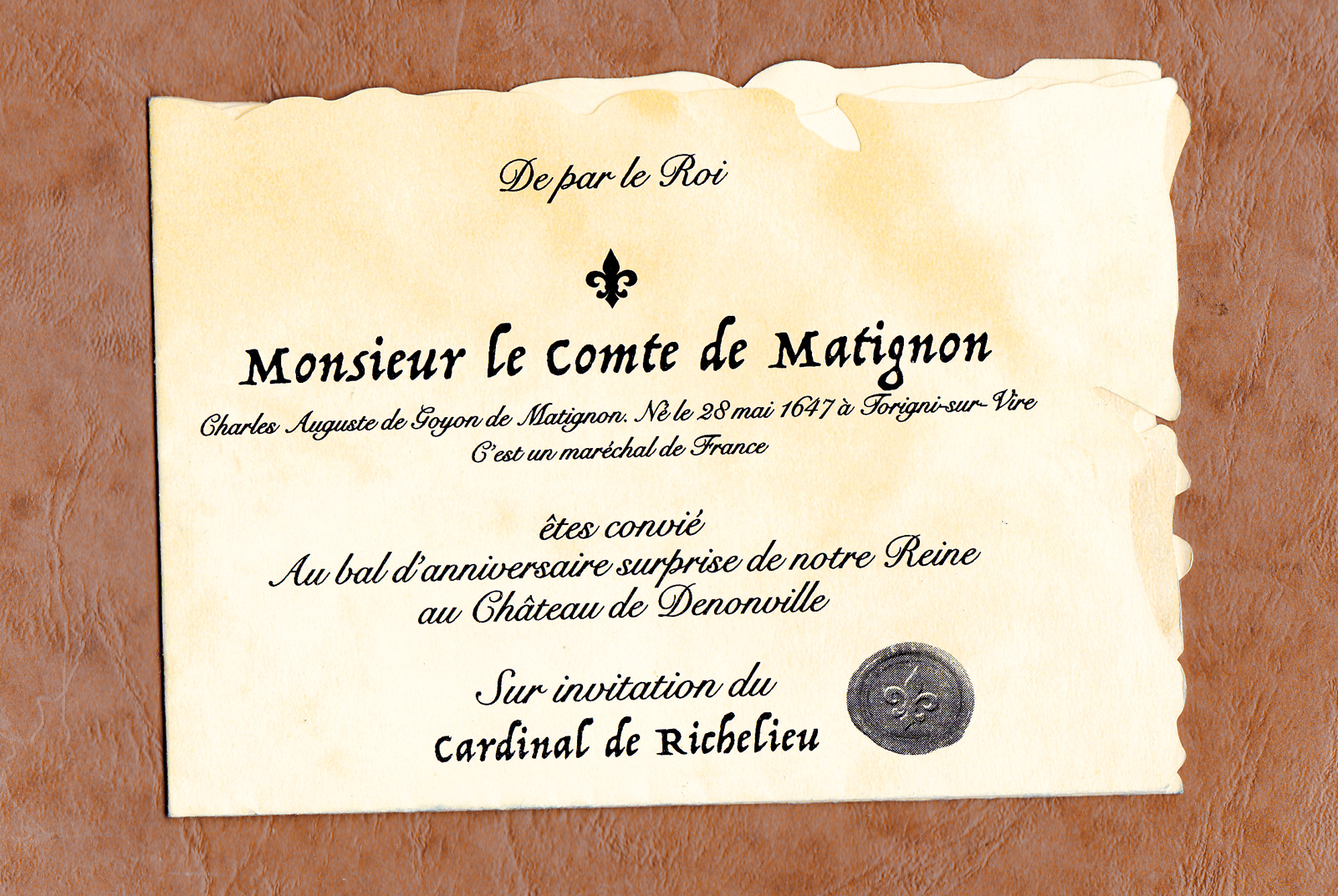 A peine le pied posé dans le domaine du Château de Denonville (dans l’Eure-et-Loir), direction les loges pour revêtir votre costume de scène et recevoir votre titre de noblesse pour la soirée. Ces messieurs peuvent être gentilshommes, homme d’église ou mousquetaires. Alors que mesdames seront apprêtées comme des grandes dames du monde, maquillées et coiffées.