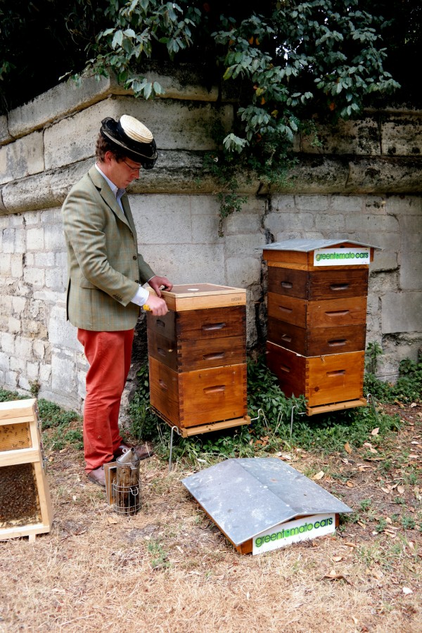Celles des Invalides ont une histoire peu commune. Tout à commencé par un courrier envoyé un 1er avril, le Commandant des Invalides a laissé lettre morte pensant à un canular. Après un an, Audric reprend alors contact et pose ses ruches au sein des Invalides. Vient ensuite le soutien de la société Green Tomato Cars qui choisit de participer à l’aventure avec l’installation de deux nouvelles ruches et qui nous a conduits à cette rencontre ensoleillée. C’est effectivement le service de VTC green de Paris qui est venu nous chercher et nous a approché au plus près des ruches et dans les meilleures conditions (clim, wifi embarqué et discrétion).