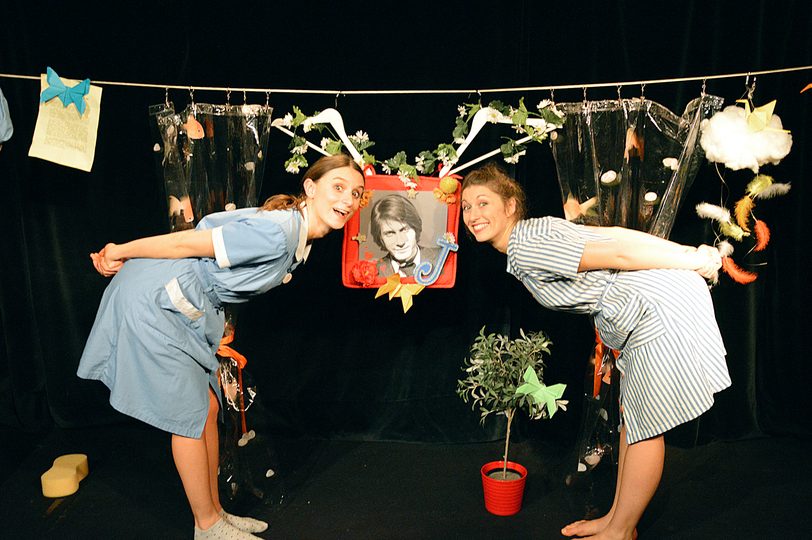 En ouvrant leurs valises, elles investissent doucement ce lieu grâce à une imagination débordante, emprunte d’une douce folie. Autour d’un portrait de Jacques Dutronc (dont elles sont des groupies fanatiques), chacune pose ses affaires.