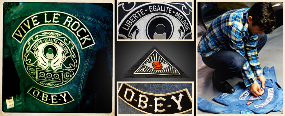 sur place, a voulu utiliser la référence des vestes de gang, en y ajoutant un peu de métaphysique. L’ami Américain a tenu à utiliser une phrase en référence aux membres du groupe The Who qui portaient un tee-shirt Vive le Rock (en français dans le texte) au cours de leurs glorieuses années.