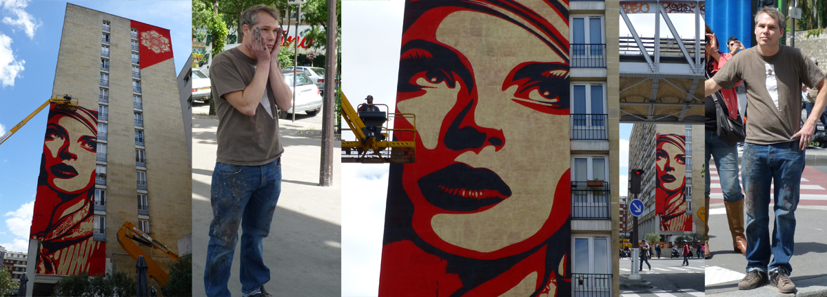 Si vous n’êtes pas passionnés par les Champs et que vous aimez le Street Art, foncez voir l’œuvre monumentale créée au cours de ces deux derniers jours par Shepard.