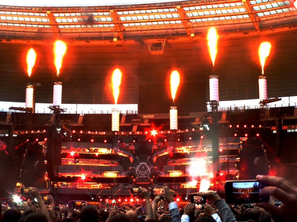 Après une intro placée sous le signe de The 2nd Law (leur dernier album), le groupe enchaîne avec Supremacy, de quoi réveiller le stade avec renfort de pyrotechnie !