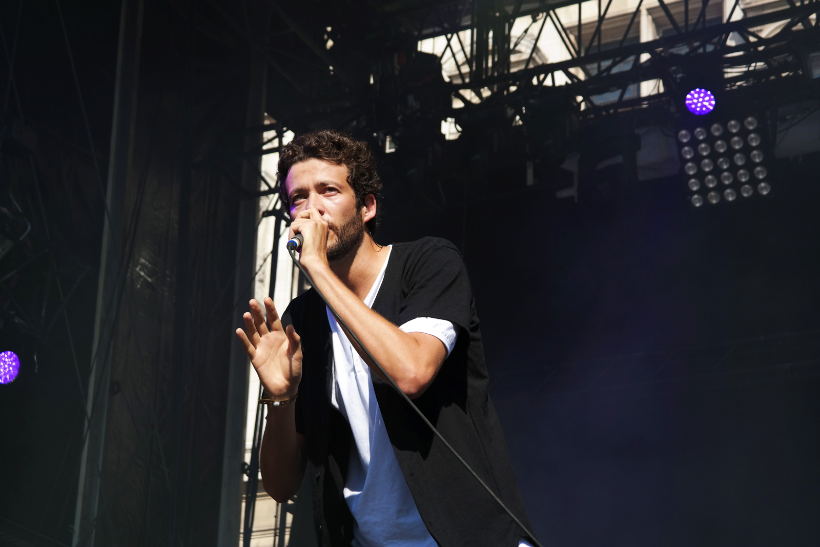 Avant ces deux points d’orgue féminins, c’est Arkadin qui a ouvert la première journée de Fnac Live. Face au soleil, sans lunettes, il n’a pas quitté le devant de scène pour cette première communion avec un public massé et en plein air. “Au-dessous du volcan”, les paroles du premier titre sont de bon augure pour ce duo avec la chaleur de fin de journée. Au cours du set, notre regard se porte sur le clavier-percussionniste qui frappe à plusieurs reprises la cymbale de son voisin batteur. Rythme parfait et amusant duo derrière le chanteur.