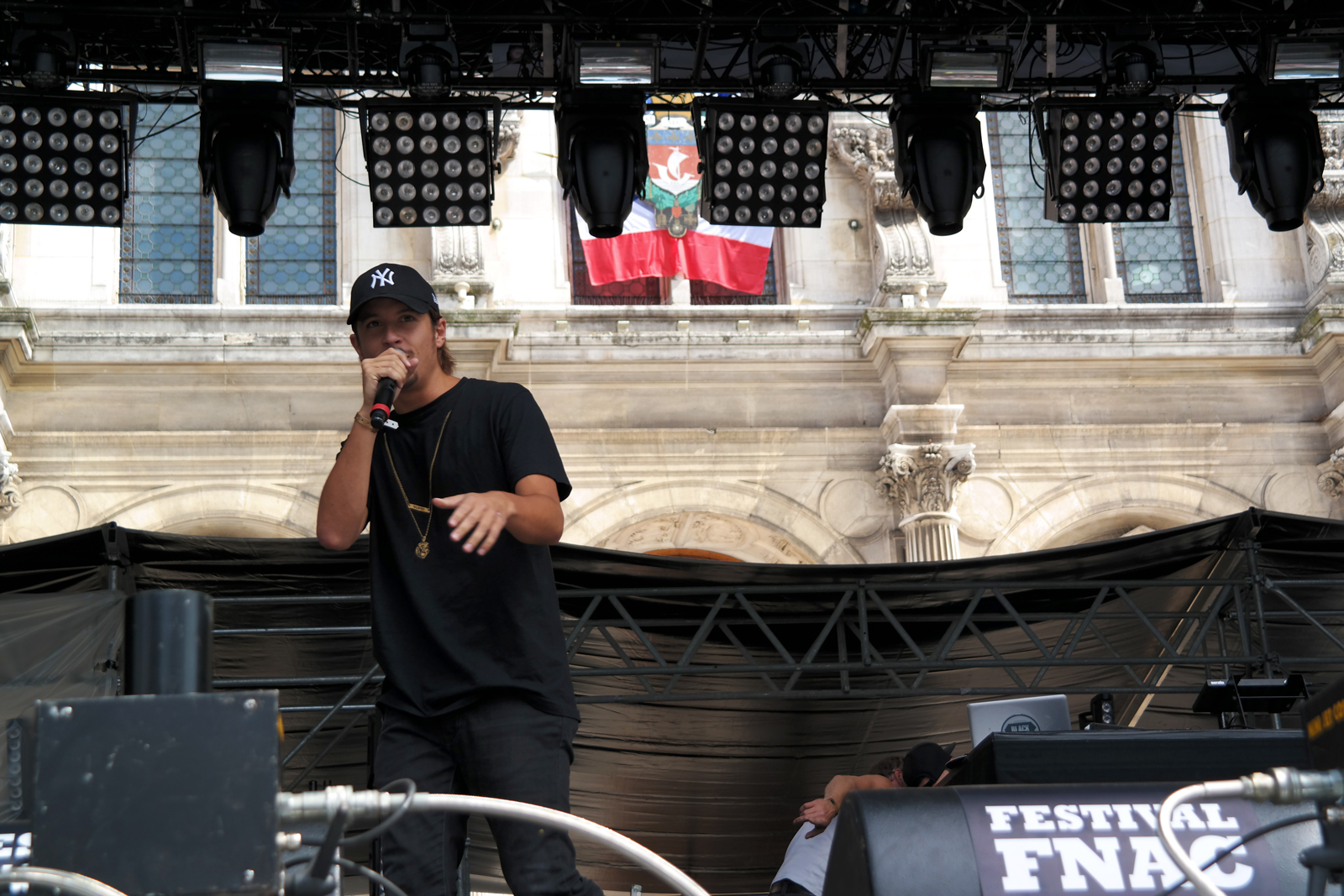 La journée de live avait débuté avec Sianna et surtout Nekfeu qui a fait débordé le parvis. Grosse chaleur. Les fans sont arrivés en tout début d’après-midi pour être au plus près de celui qui fait le buzz et qui a posé en couv des Inrocks avec Virginie Despentes. L’attente a été récompensée sur les coups de 16h avec la balance son et l’apparition furtive du bogosse.