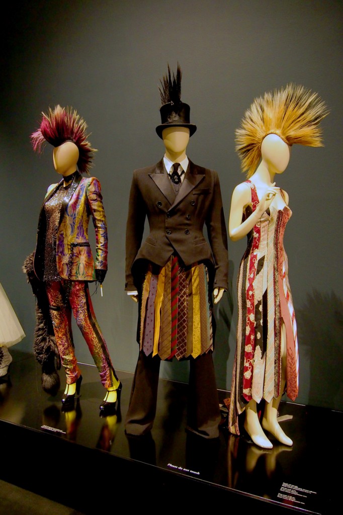 Amy Winehouse, souvenez-vous, avait fait l’objet d’une collection hommage après sa mort par le couturier. Son fantôme traverse les différents décors de ce parcours foisonnant. Autre figure musicale, David Bowie, dont le double Ziggy Stardust est aussi convoqué.