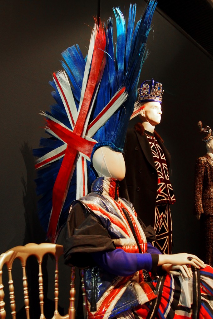 Ici à Londres, c’est le punk et Amy Winehouse qui sont à l’honneur aux côtés des indémodables corsets de Madonna, marinières et autres inspirations et déclinaisons multiples du glamour à la française.