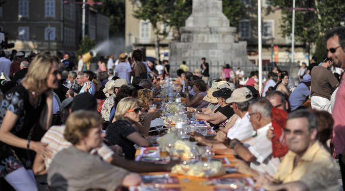 Imaginez, samedi 2 juillet, le soleil se couche lentement et 2 000 à 2 200 personnes sont toutes réunies pour une même soirée chaleureuse, un moment unique : c’est cela le grand banquet (labellisé Grande Tablée par le ministère de l’Agriculture).