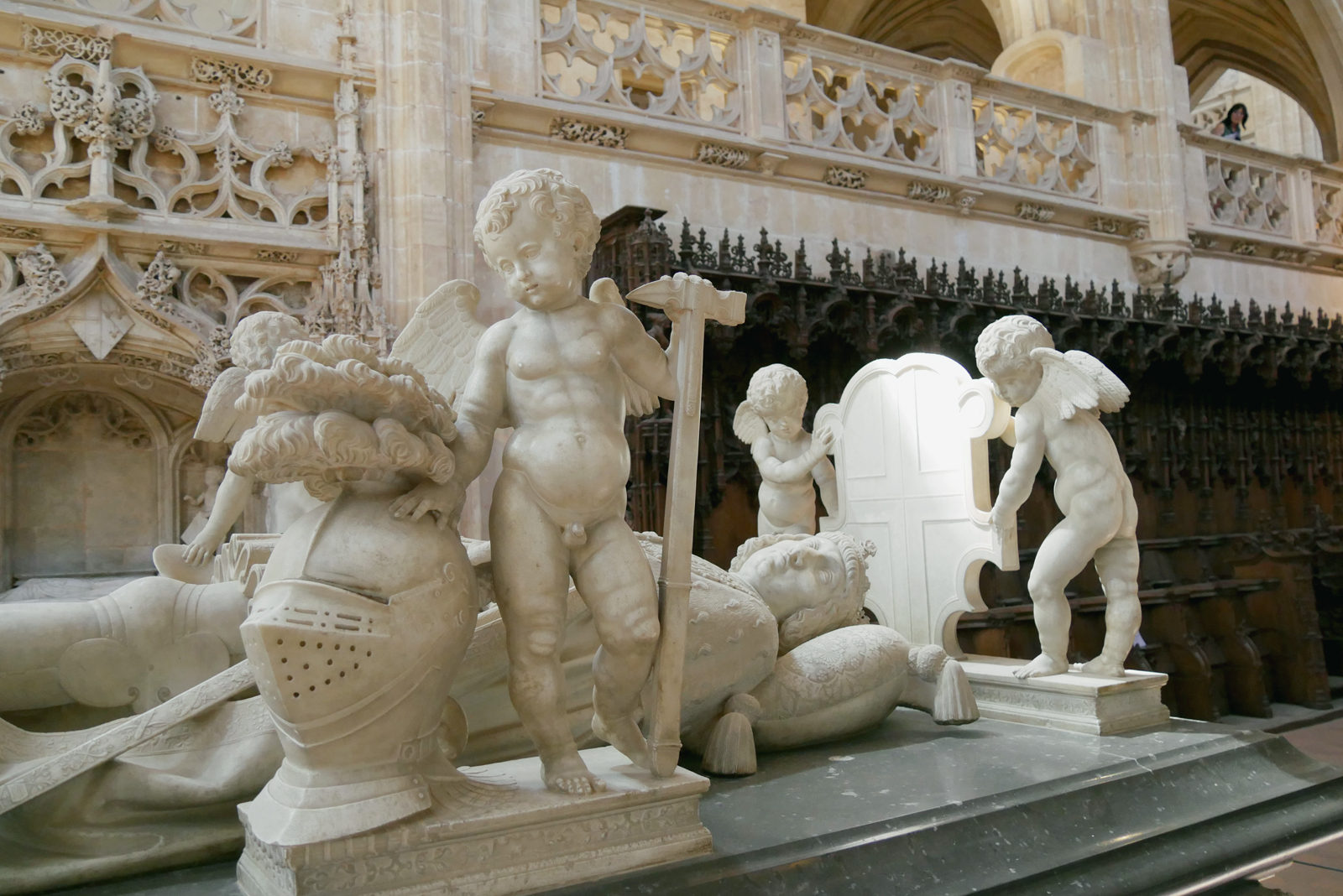 Le double gisant de Marguerite d’Autriche couché dans un baldaquin a retrouvé son blanc immaculé avant que celui de son bien-aimé Philibert le Beau bénéficie des mêmes attentions.