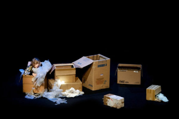 «Il faut partir !» dit un homme. Au milieu de boîtes, une jeune femme déambule, l’air faussement hagard… Avec une certaine mélancolie, elle se met à ranger les objets de son quotidien. Cependant, ils ne se laissent pas faire et entament avec douceur une rébellion. Ainsi, une ampoule reste éclairée malgré le fait qu’elle soit dévissée, des chaussures refusent d’être entreposées dans un carton… Par de subtiles illusions, les prémices du spectacle à venir se font sentir et nous sommes déjà intrigués…